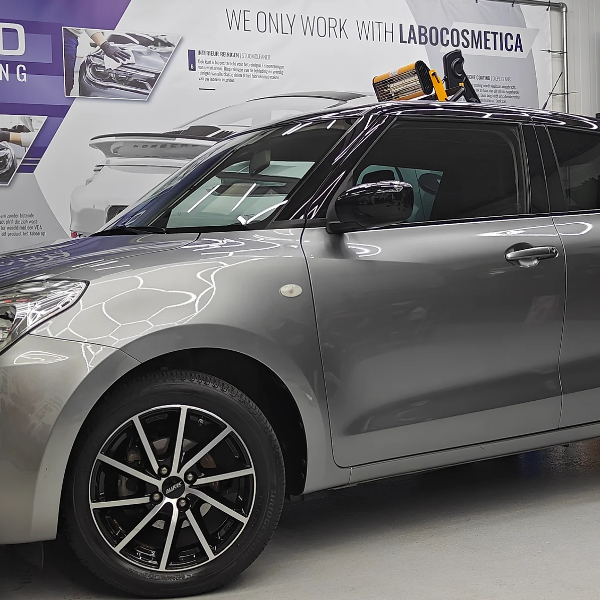 - Het pakket omvat een grondige autoverzorging met een hoogwaardige voorwas, een schuimwasbehandeling, een gedetailleerde handwas inclusief de reiniging van deuren en deurposten met de 2-bucket methode, het verwijderen van verkeersvuil en/of waxrestanten met de claying methode indien nodig, het reinigen van velgen, banden en wielkasten, drogen met een microfiber droogdoek, ruiten reinigen zowel binnen als buiten, stofzuigen en reinigen van het interieur inclusief de kofferbak, het aanbrengen van non-shine bandengel, en tot slot het aanbrengen van een quick detailer voor een glanzend resultaat.